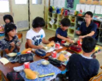 ★今月から、つばさ学級の仲間との<交流給食>がはじまりました。
