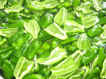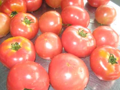 写真は,上から 「焼き肉に入るピーマンを洗っているところ」「スープに入るトマト」「今日の給食です。