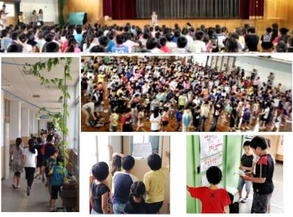 1年から6年生の子どもたちが小グループになって,校舎内に設置された問題を解いてまわり、その正答数を競うものです。