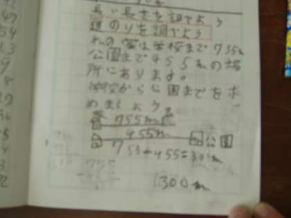 今日の算数の授業は,長さの文章題の問題を解きました。