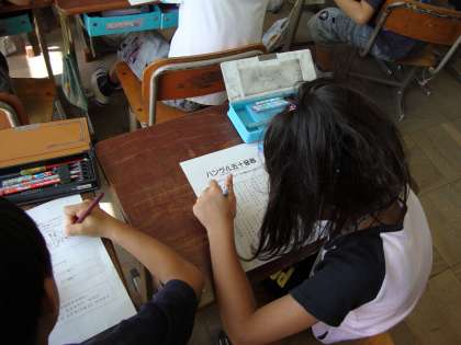 授業後の感想を聞くと「難しかったけど,楽しかった」「ハングルだけでなく,他の国の言葉も書いてみたい」などと言う意見が多く意欲的に学習できたようです。