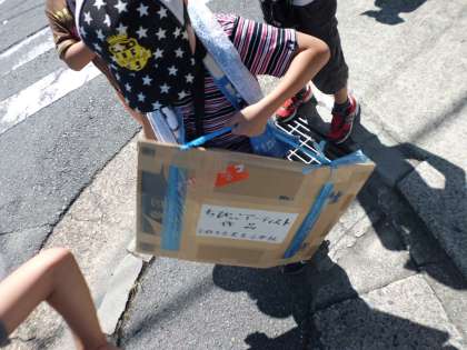 淀駅までの道のりを,交通に気をつけながら,交代で絵を持ち,しっかりと列になって歩き通しました。