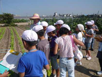 生津の農家では,子どもたちが,考えてきた質問に対して,地域の農家の方がやさしく答えてくださいました。