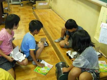 送風機を使っての実験に子どもたちは大はしゃぎです!