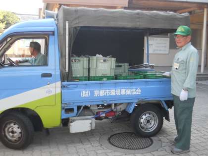 毎週金曜日の朝に各家庭から届いた空の牛乳パックの回収トラックがやってきます。