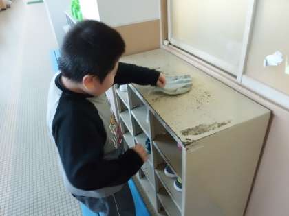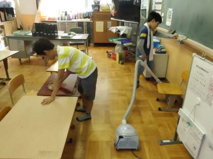 自分たちが毎日使っている教室や廊下を,がんばって掃除できています。