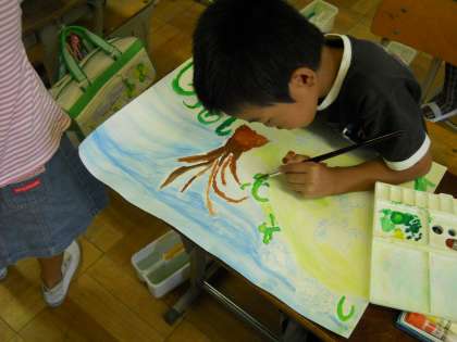 お話を聞いて心に残った場面を,想像を膨らませながら描いています。