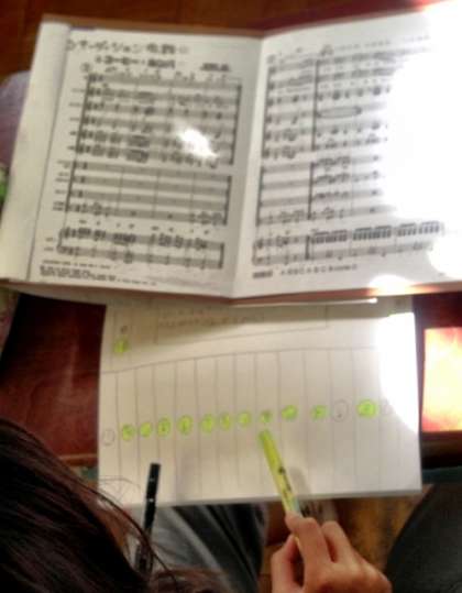 ノートに木琴,鉄琴を書いての涙ぐましい練習が続いています。