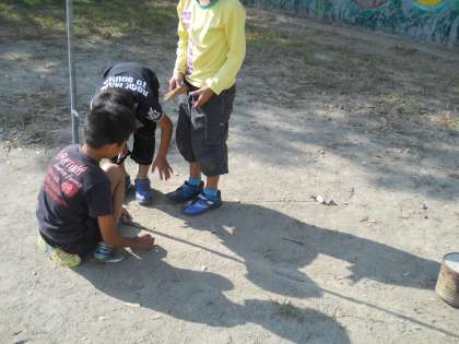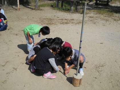 今日の理科では,「時間がたつとかげは動くのだろうか」という疑問から,運動場に立てた棒の影を時間をあけて観察しました。