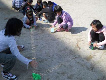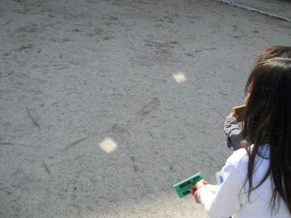 1時間目の今日は,太陽の光を鏡で反射させ,光の進み方を調べます。