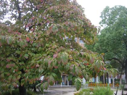 おはようございます!! 今日は,1・2校時は授業参観で,3・4校時が「楽しい音楽会」です。今日の秋空のように,さわやかに歌い,心を込めて演奏してくれるものと期待しています。来週は,学期末最終週です。丸池の横にある「ハナミズキ」の実が赤くなり始め,葉も色づき始めました。