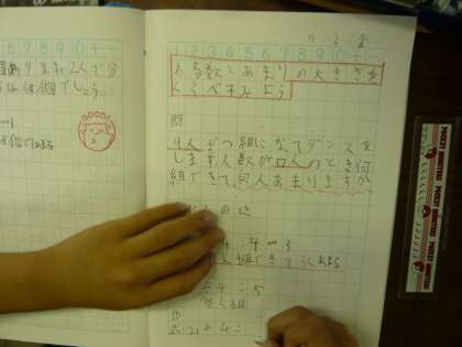 今日の学習では,わる数とあまりの大きさについて考えました。