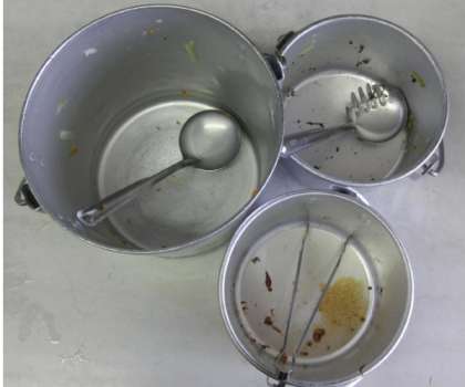 そして,食缶に入っている分量と食器の大きさ,数を見比べて,適量を取り分けることができます。みごとに食缶を空っぽにすることができる子もいます。