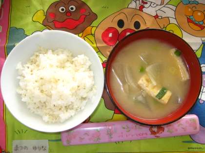 『みそ汁』は,煮干しを使ってだしをとりました。家庭科室におだしのいい香りが漂っていました。実は,「だいこん・油揚げ・青ねぎ」です。