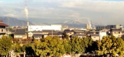 今日,この窓から遠くを見ると,お山が雪化粧をしていました。