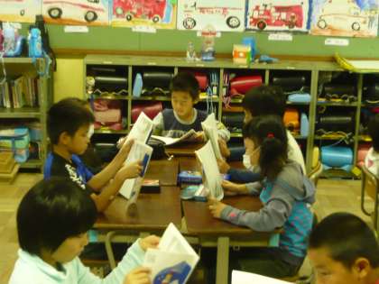 『場面の様子をそうぞうしながら音読しよう』というめあてのもとに,グループごとに音読をしています。これから,たくさん音読をしていきます。
