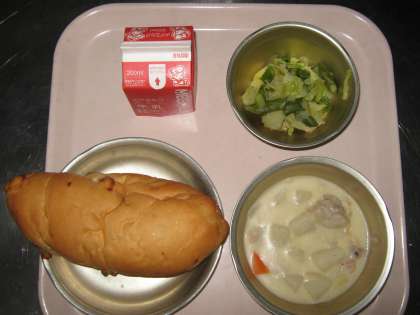 今が旬の「かぶら」を使ったメニューです。今日は洋風で,「クリームシチュー」にしました。いつものクリームシチューのじゃがいもに替えてかぶらを入れました。かぶらのやわらかい口あたりが,とってもまろやかでした。