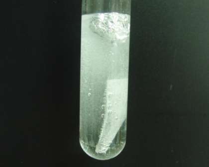 <アルミニウムに塩酸をつけたら変化があるだろうか?>という実験をしました。