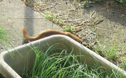 昨日終業式をして,今日また授業をするのは何か変な感じです。早朝に,窓の外を見ると,またまたイタチが遊んでいました。プランターの影になっていますが,何かもぞもぞとしていました。
