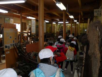 昔に使われていた農機具や生活用品がたくさん展示されてあり,初めて見る道具の数々に子どもたちは目を輝かせていました!