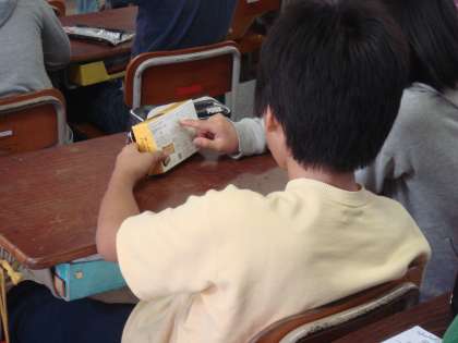 今年度2回目の食の学習がありました。今日も栄養教諭の平山先生に来て頂き,「食品添加物」についての学習をしました。添加物とは一体どのようなものか紙芝居で聞き,その後それぞれ持参したお菓子の箱・袋を見て,普段食べているお菓子にはどのような添加物が入っているかを調べました。今日の学習を生かし,自分たちの食について見直してほしいと思います。