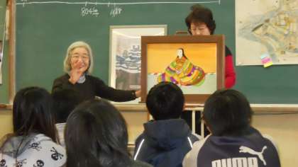 総合的な学習の時間にゲストティーチャー(地域の方)をお招きし,わたしたちの暮らす淀の町の歴史について学びました。時代は遡り,桓武天皇の時代から現在に至るまでの出来事を,立派な紙芝居を通してお話してくださいました。