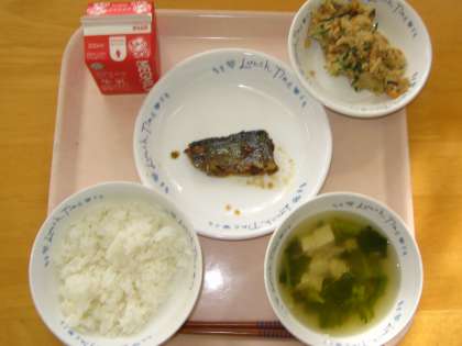今日の給食は,『ごはん・牛乳・さんまのかわり煮・花菜のすまし汁』です。
