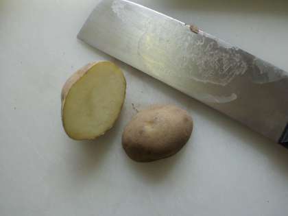 じゃがいもの種芋を植えました。前もって,自分たちで畝をつくったり,包丁でじゃがいもを切ったりして準備しました。