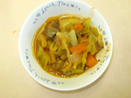 今日は,牛肉・じゃがいも・たまねぎ・にんじん・キャベツ・ホールトマトを入れて煮込みました。