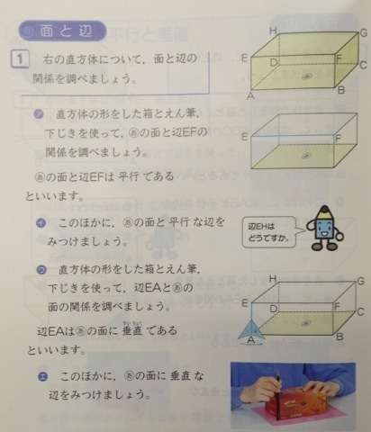 今日も,もちろん,自作の直方体を手に教科書通りに進めていきます。