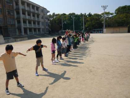 6時間目にグラウンドへ出るとかげが長くなっていることに気付いたようです。