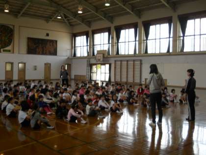 3時間目に体育館で,1・2年生で集まり,交流の顔合わせをしました。