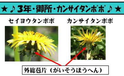 遠足の下見の時に京都御苑でみたタンポポは,外総苞片が反り返っているセイヨウタンポポだったのです。