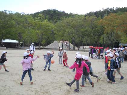 お弁当の後はグランドで,ドンじゃんけんやドッジボールをしてみんなで遊びました!