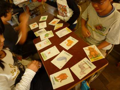 そのあと前の復習で,英語で書かれた動物のカードを使って