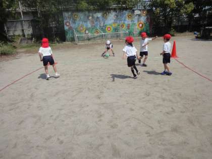 試合は班ごとに4対4(5)で行います。