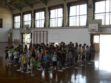 1組と2組でパートを分けて歌います。