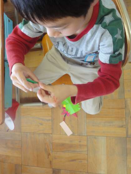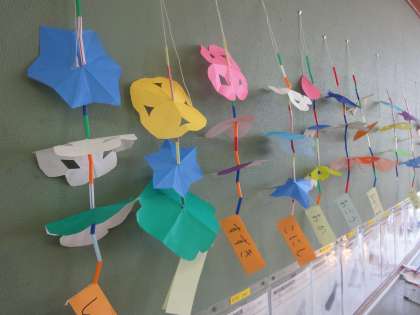 出来上がった子から,後ろの掲示板に吊るしていくと,