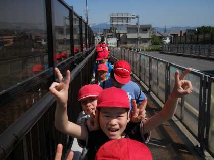 木津川流域下水道「洛南浄化センター」へ行きました。淀大橋は1列で歩きます。到着後,係の方から諸注意を聞きました。また,「水はへらない」(繰り返し使用するもの)との説明があり,子どもたちは興味深く聞き入っていました。