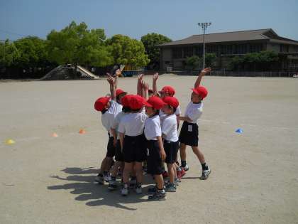 作戦タイムが終わると…。自然と「えいえいおー!」「がんばるぞー!」の声が…。なんとかわいい子どもたちでしょう。