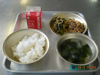 給食では、いろいろな国のお料理を知ってもらうためのメニューを用意しています。おなじみの「ビビンバ」もお隣の国の代表料理。