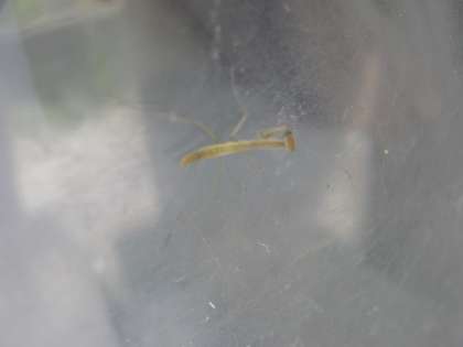 今朝,水やりをしに行った帰り道で,カマキリが孵化しているところを見つけました。