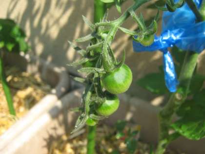 ミニトマトは,もう小さな緑色の実が実っています。