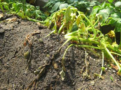 畑のじゃがいもは収穫どきです。