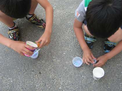 バブロケットを外に出て飛ばすと,勢いよくロケットが飛んで,みんな大喜びでした。
