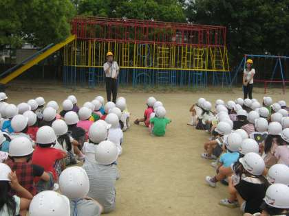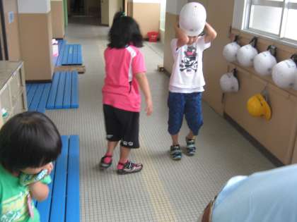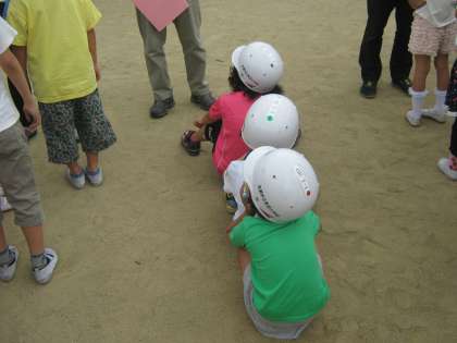 ヘルメットも自分でかぶり,並んで「おはしもて」を意識しながら避難しました。