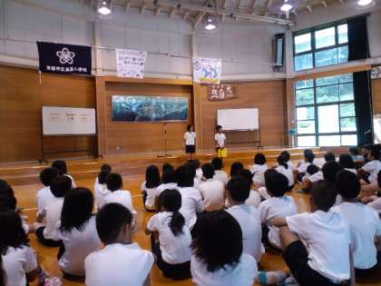 紫明小学校,大原小学校と合同の朝のつどいです。