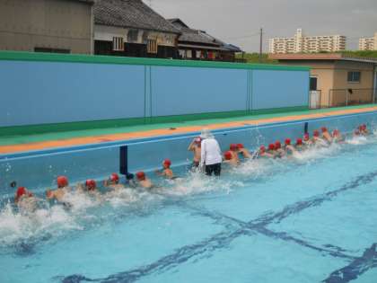 ワニさん歩きなどの水慣れをした後は,バタ足の練習をしたり,伏し浮きをしたりしました。
