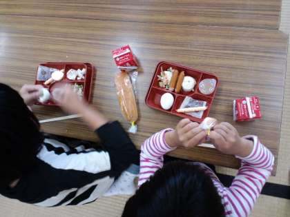 昼食はマリンランドでいただくので,みさきの家での食事はこれで最後になります。みんな美味しくいただいています。