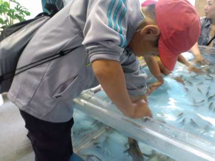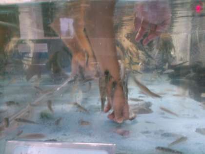 人の皮膚の角質を食べる習性のあるドクター・フィッシュ「ガラ・ルファ」に人気が集まり,水槽に手を入れて角質を食べてもらう子が続出!